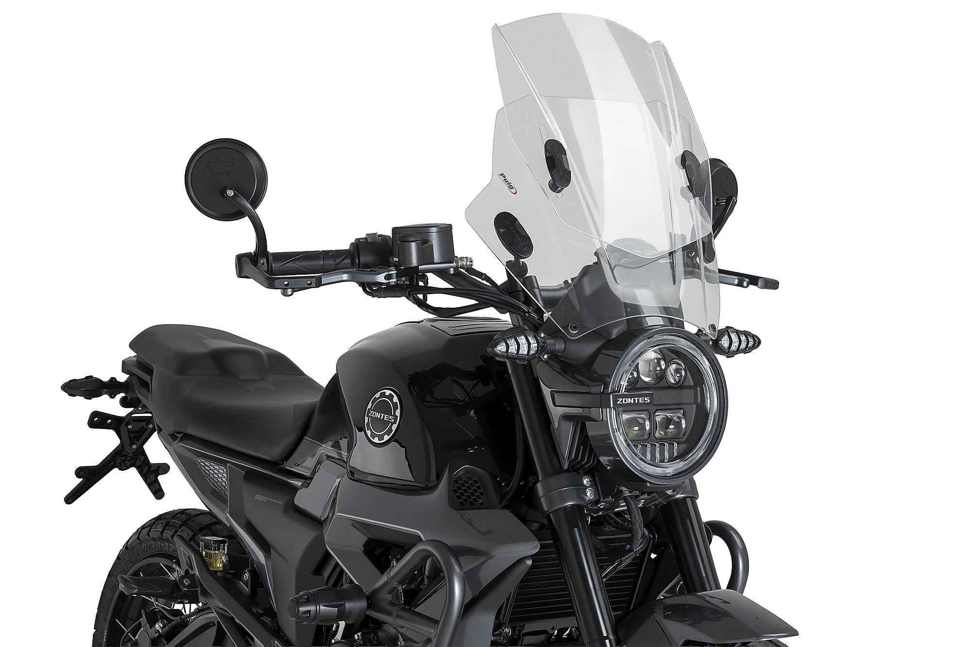 Ce pare-brise est disponible pour la plupart des modèles de phares ronds du marché, mais si votre modèle de moto le nécessite, un kit de montage spécial est disponible. Seulement pour certains modèles spécifiques.
