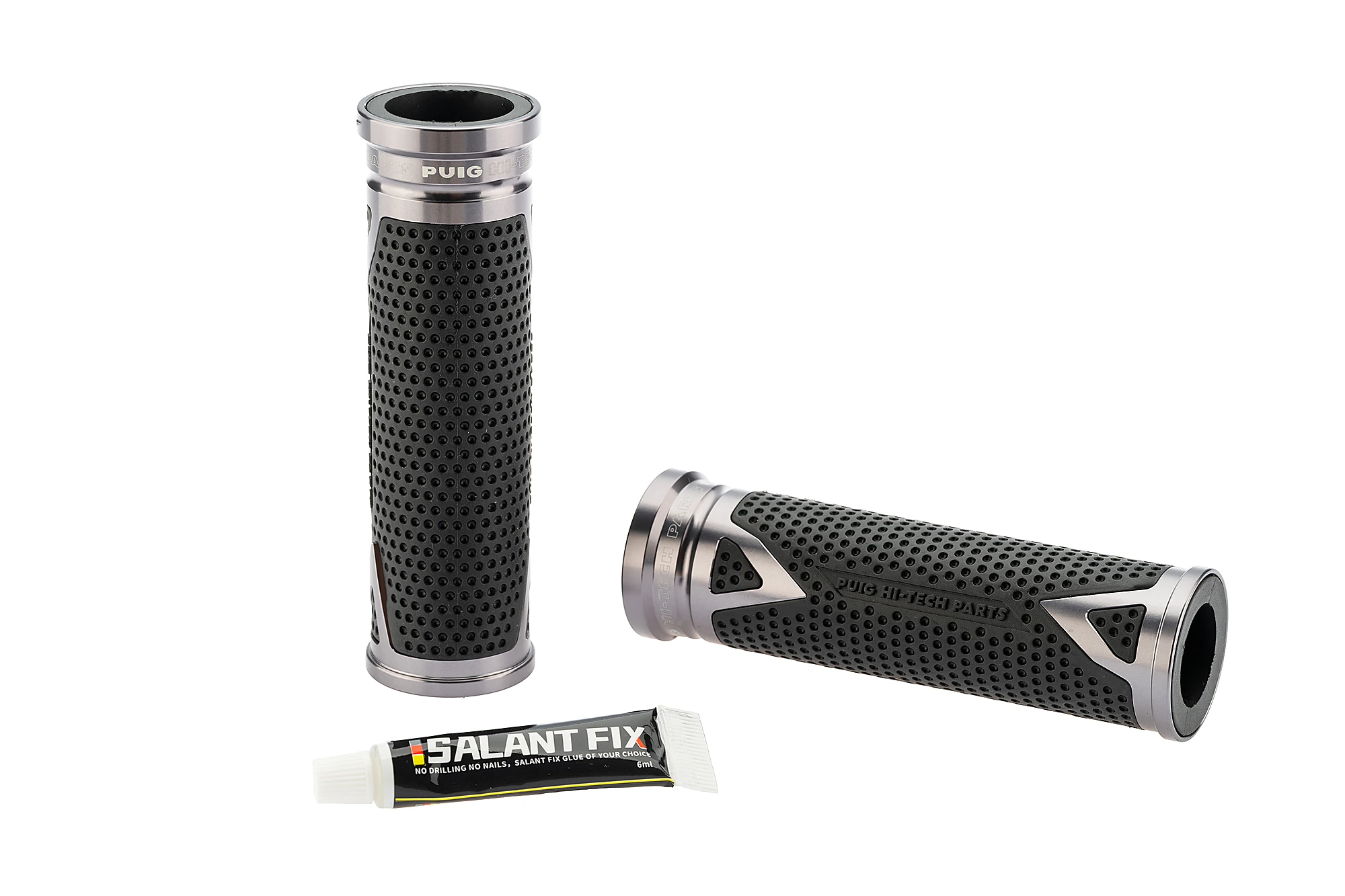 Les poignées Puig Radikal conviennent au guidon de 22 mm de diamètre et sont disponibles en deux longueurs différentes, 119 mm et 123 mm. De plus, grâce à la technologie Hi-Tech, Puig a obtenu  que le poids de la pièce soit seulement, de 64gr.