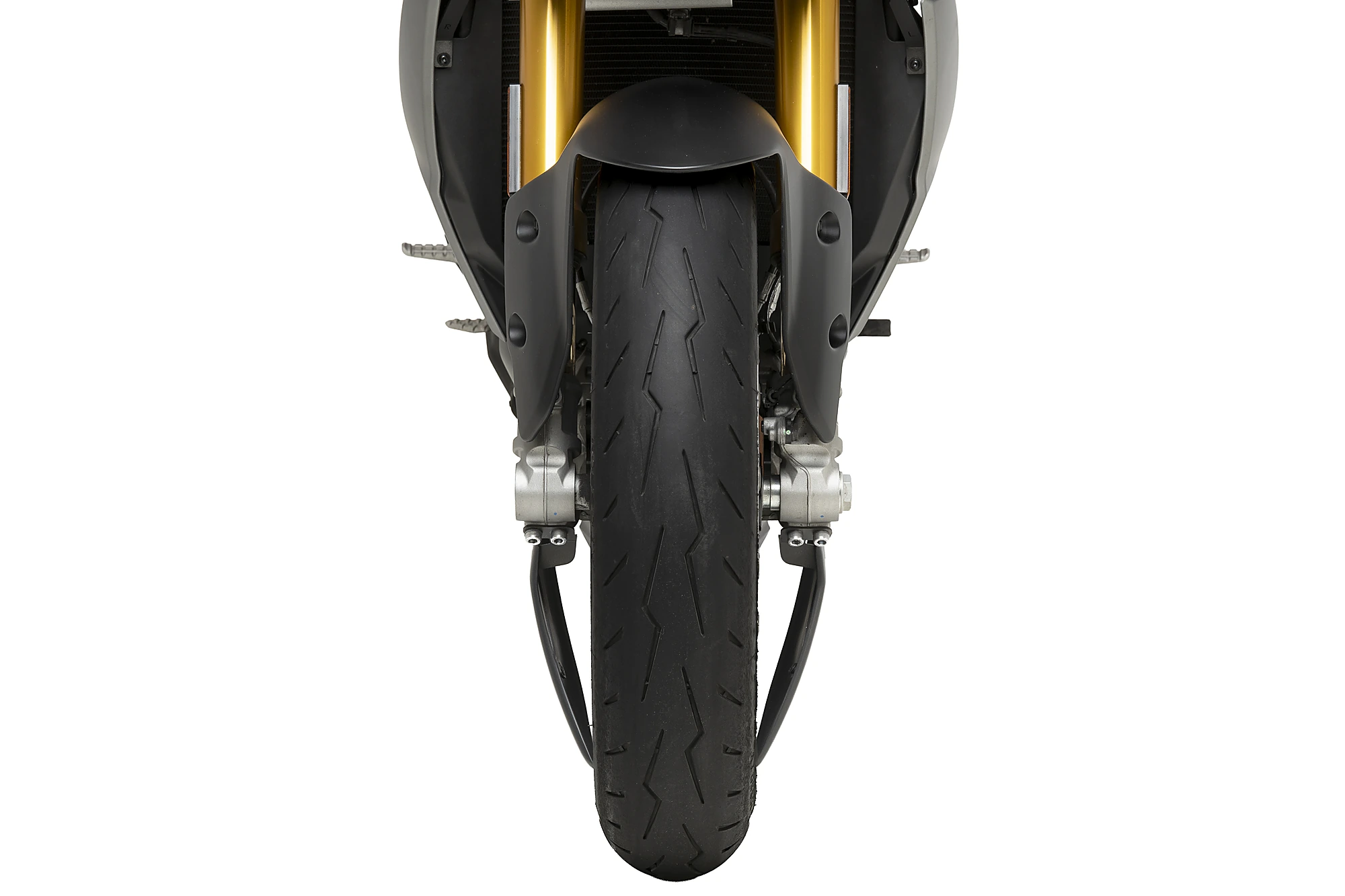 Sa fonction principale est de réduire les turbulences générées par la roue avant, offrant ainsi une plus grande stabilité et précision, notamment à haute vitesse ou dans des conditions de conduite exigeantes. Grâce à cet effet, la moto présente un comportement plus prévisible et un confort supérieur pour le pilote.