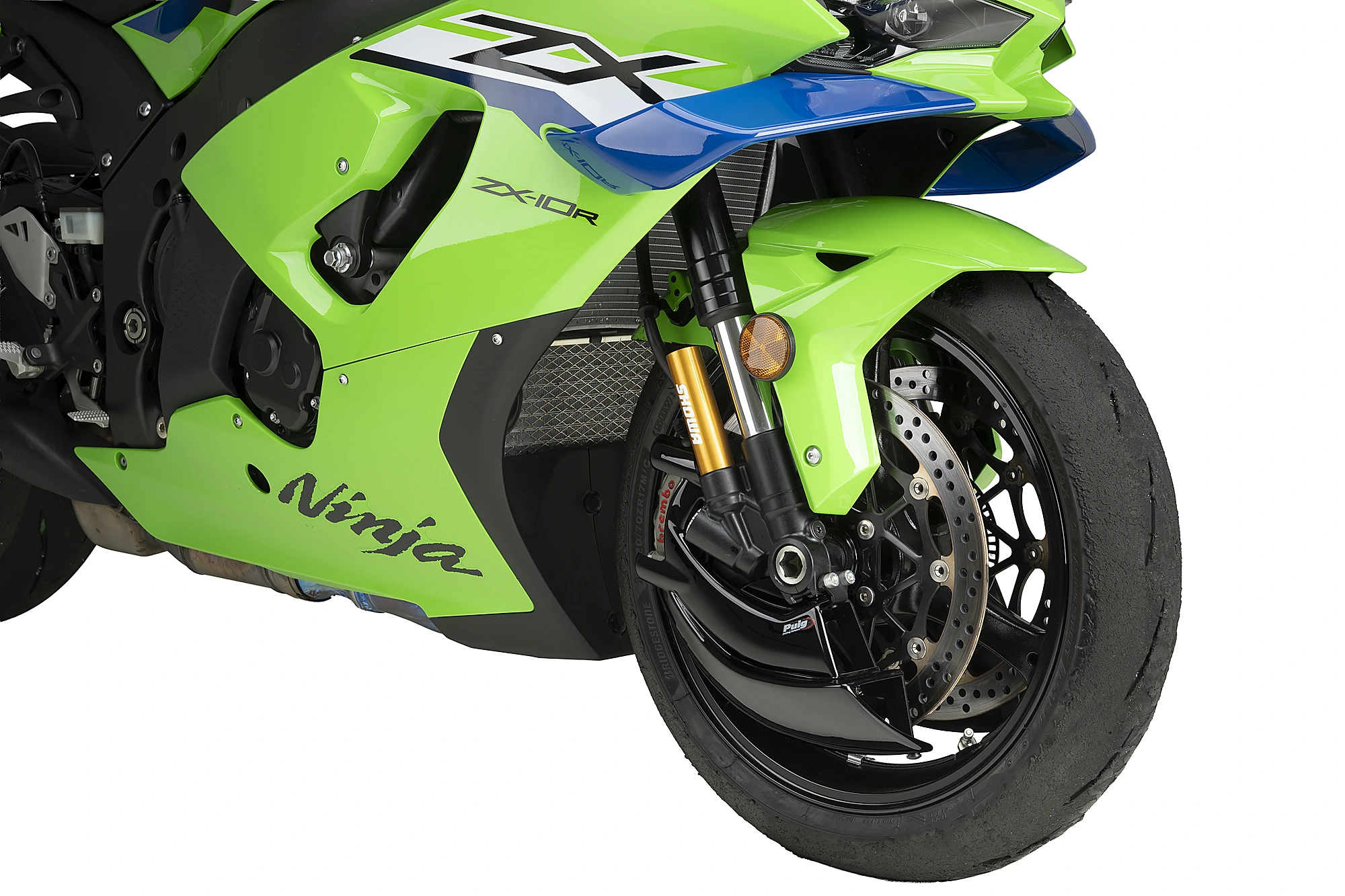 Leur design étudié, en plus d'offrir une esthétique plus sportive et personnalisée, élimine les turbulences au niveau de la roue avant en créant une couverture lenticulaire partielle qui favorise l'aérodynamisme de la moto, notamment à grande vitesse. Comprend des supports en aluminium robustes et légers finis en noir texturé discret.