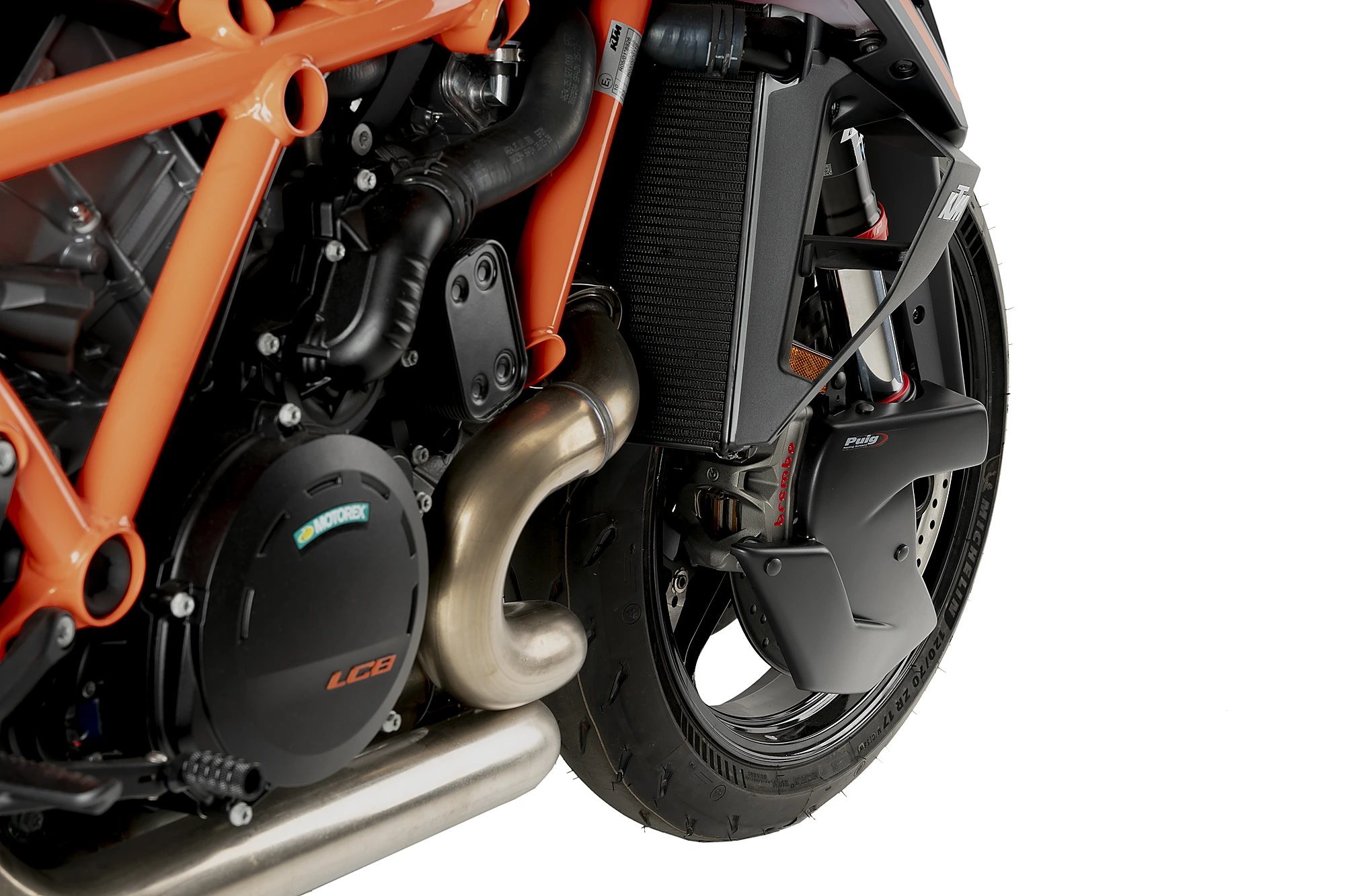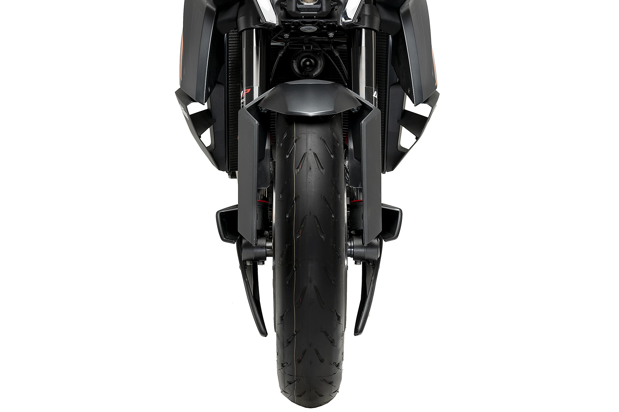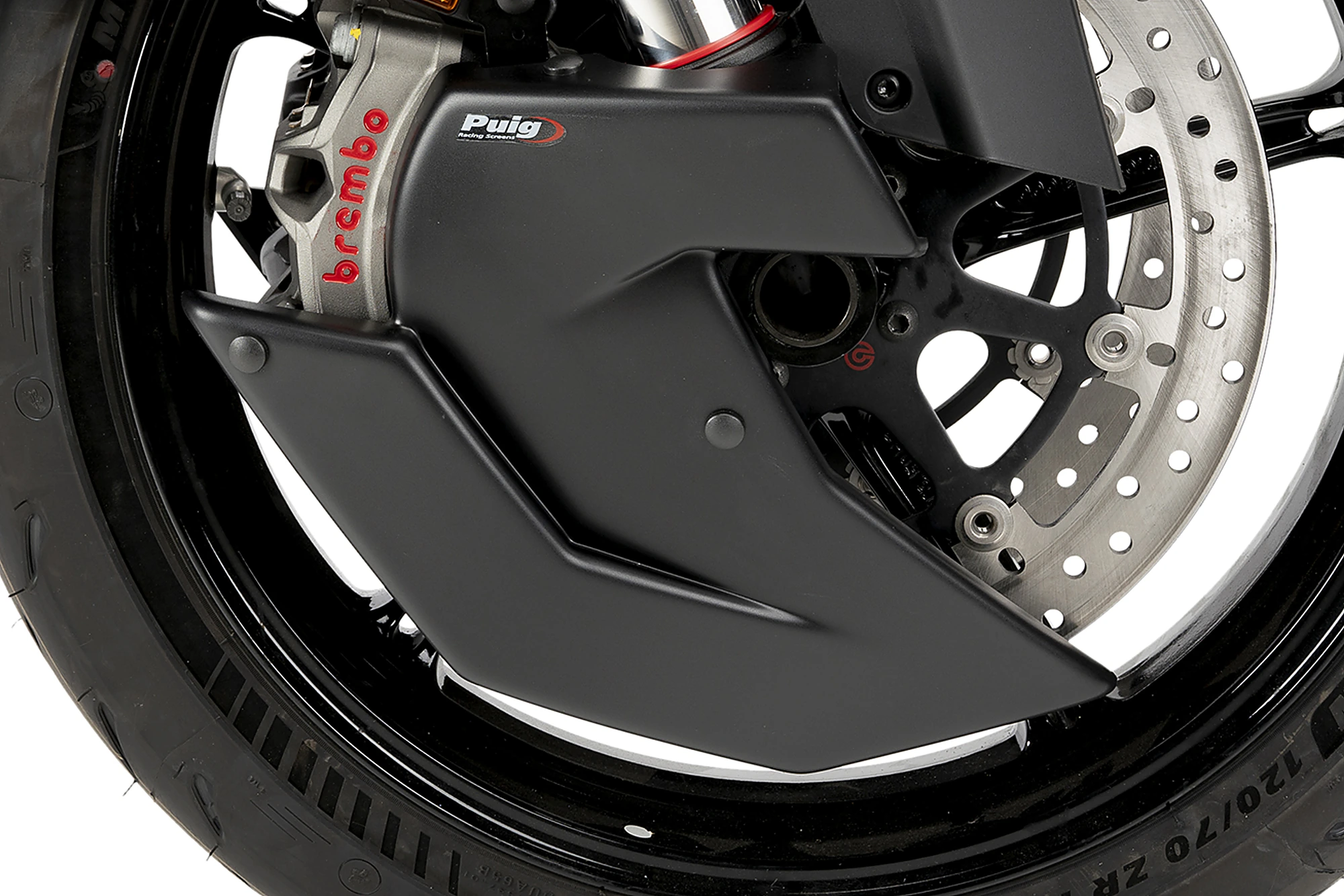 Leur design étudié, en plus d'offrir une esthétique plus sportive et personnalisée, élimine les turbulences au niveau de la roue avant en créant une couverture lenticulaire partielle qui favorise l'aérodynamisme de la moto, notamment à grande vitesse. Comprend des supports en aluminium robustes et légers finis en noir texturé discret.