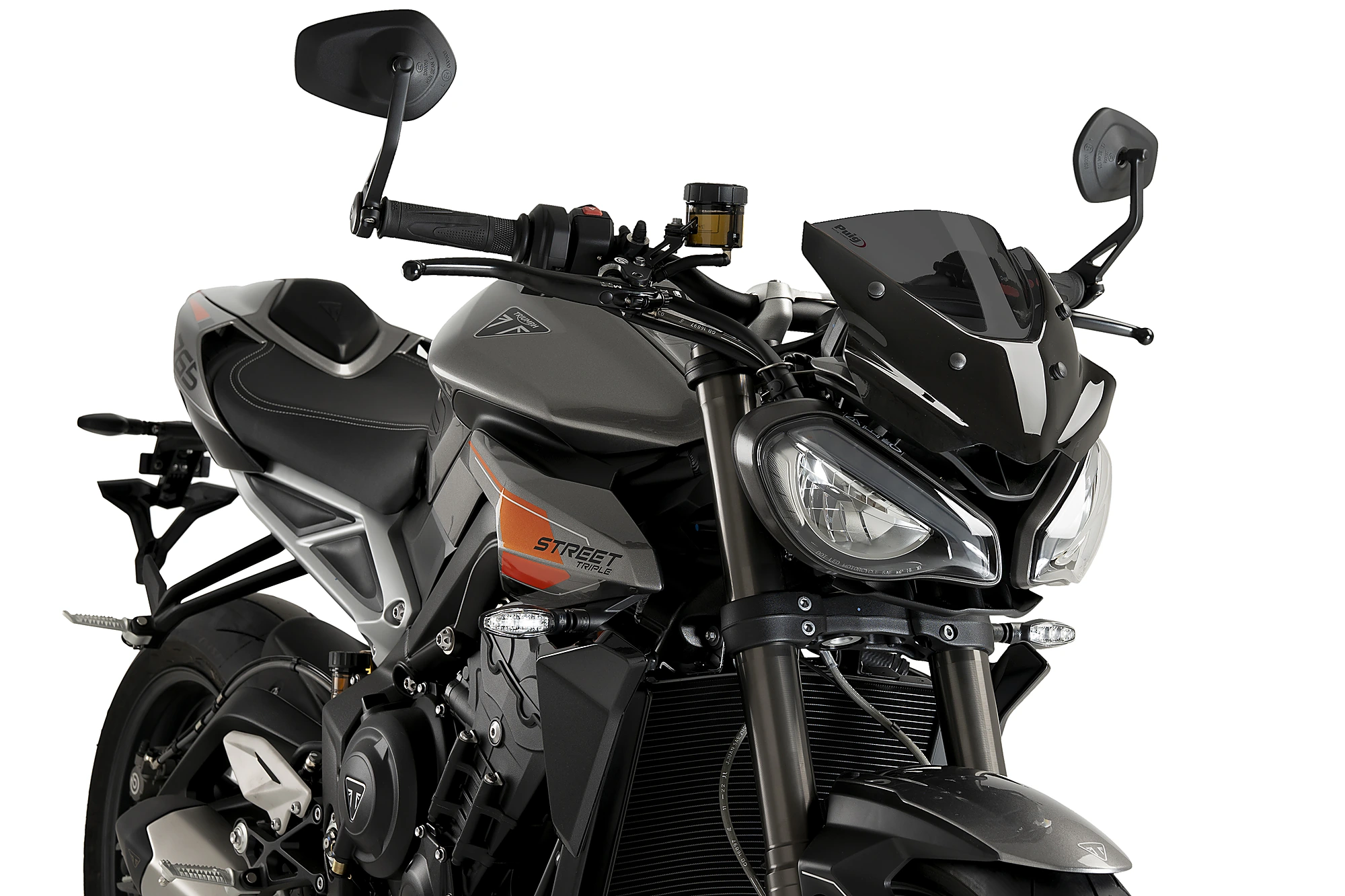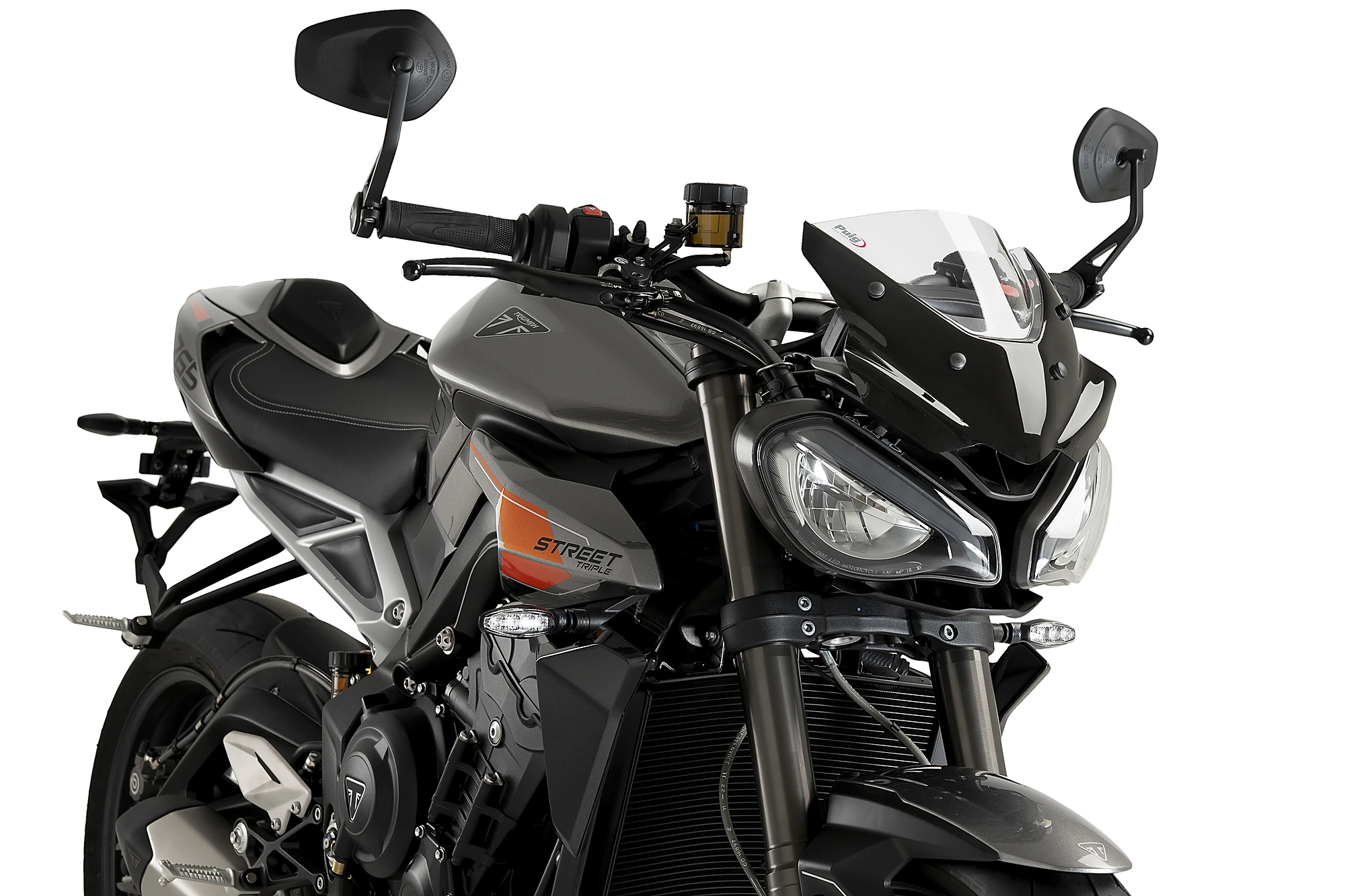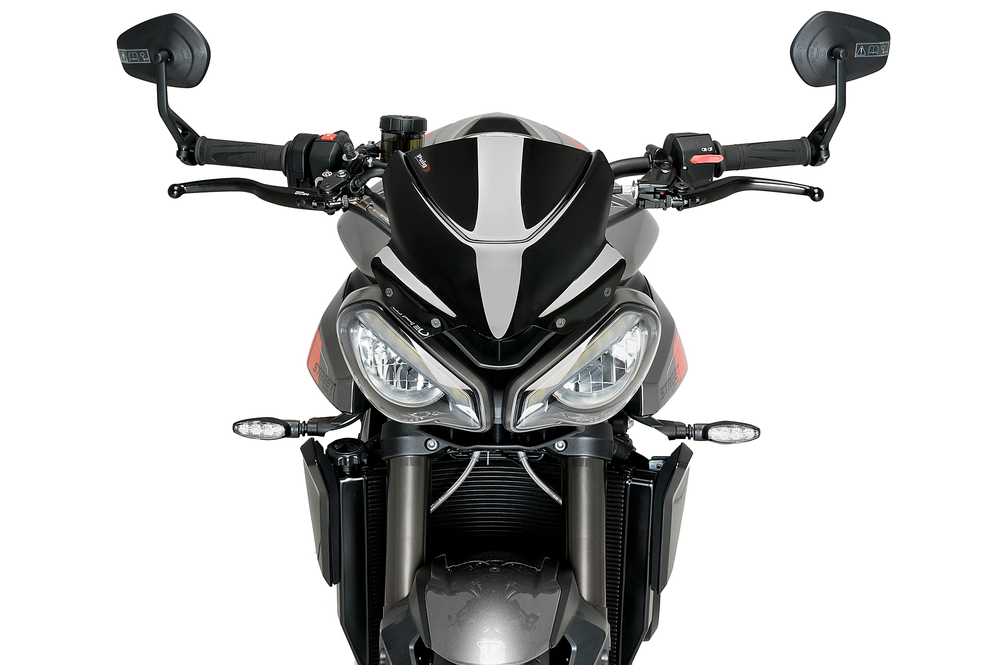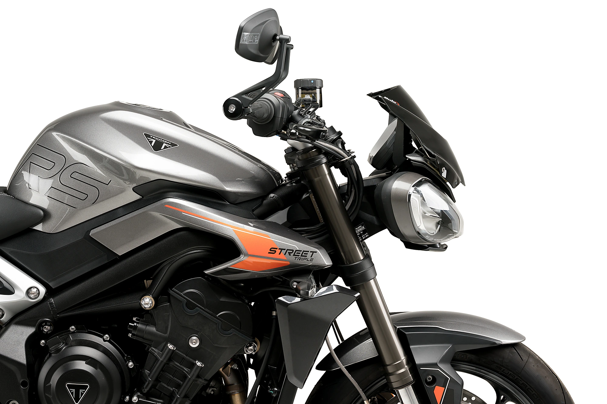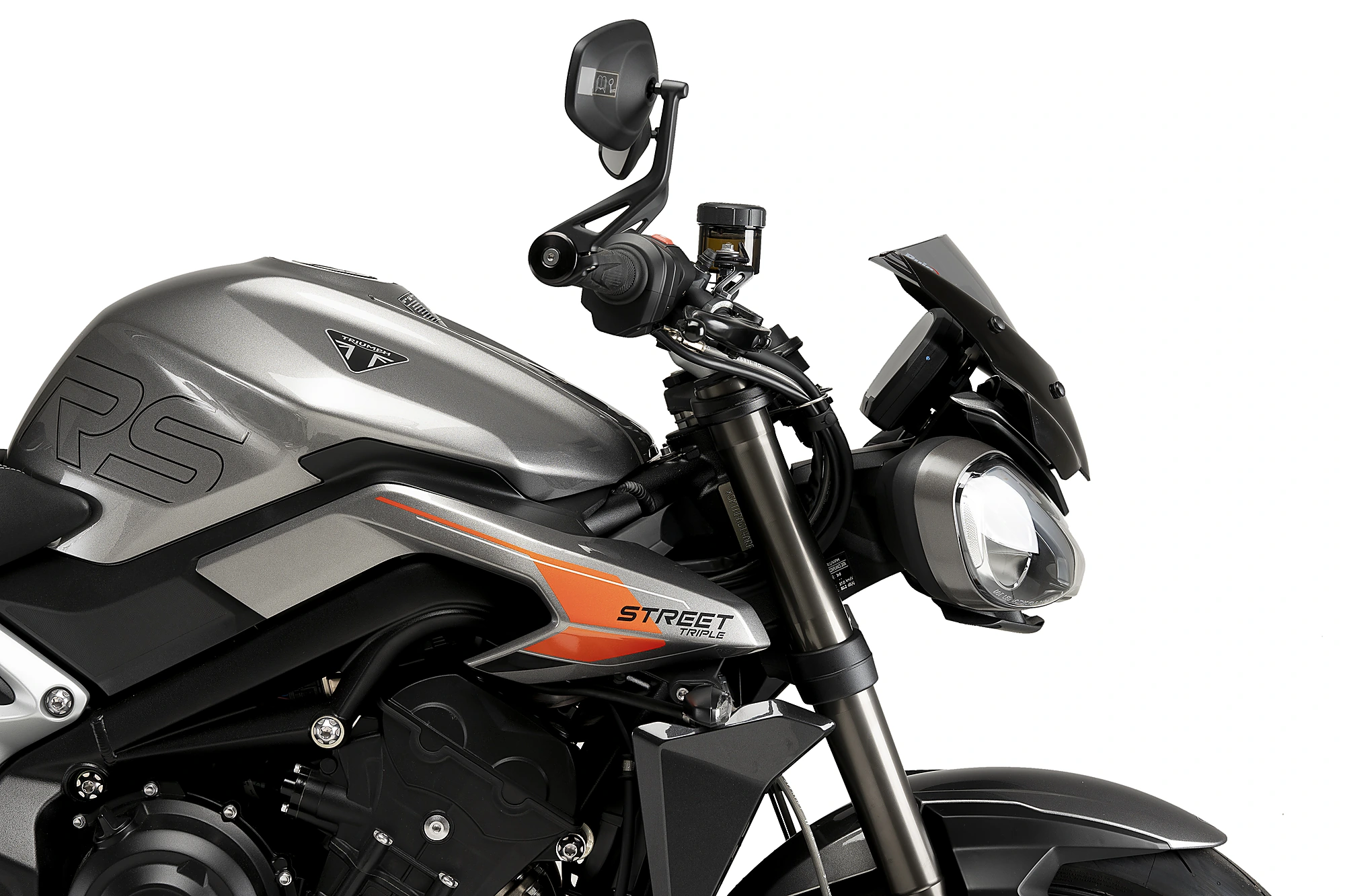 Inspiré de l'avant du prototype réalisé par Triumph pour le Moto2 en 2017, il présente des surfaces épurées et minimalistes qui s'adaptent parfaitement aux lignes de ce roasdster.