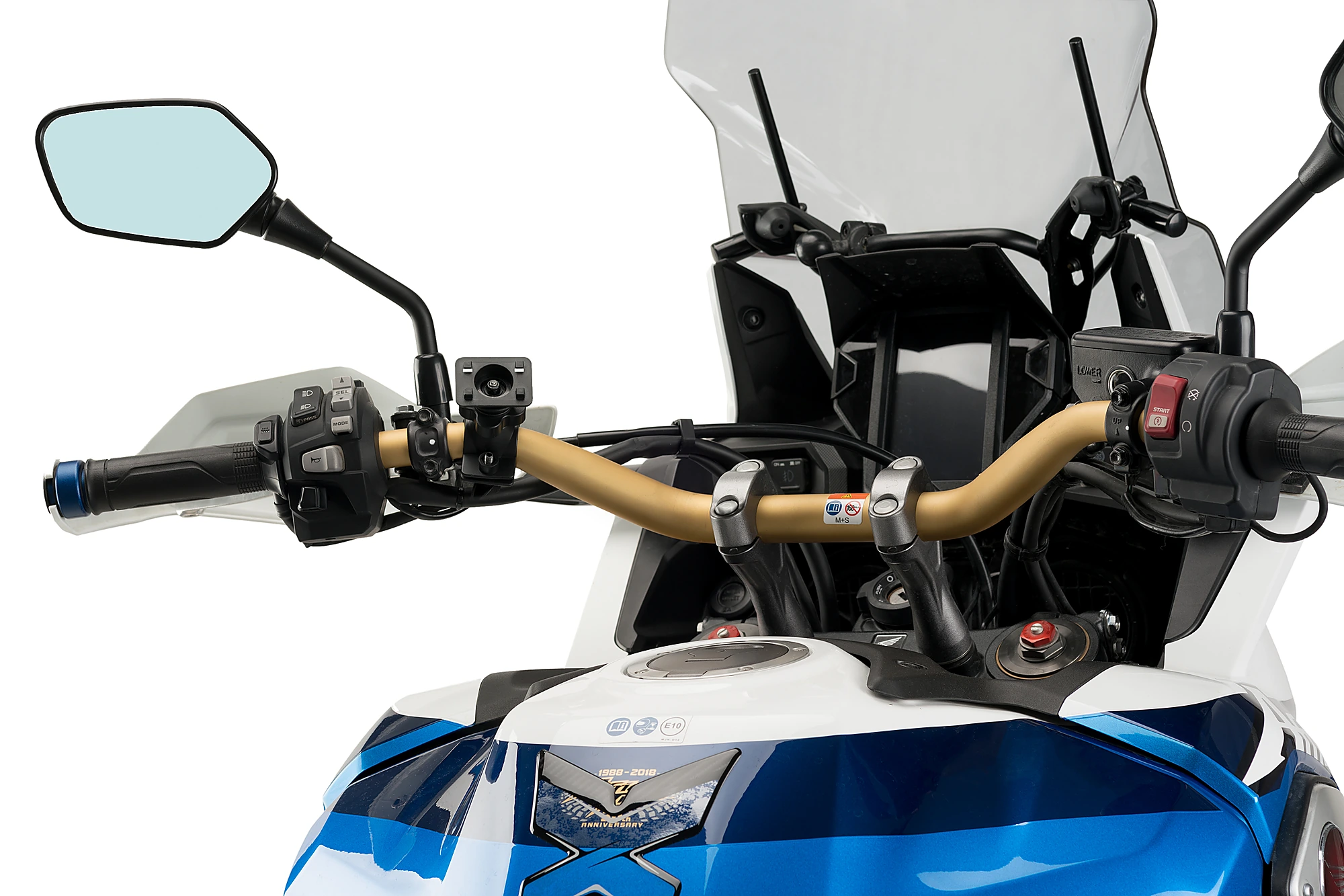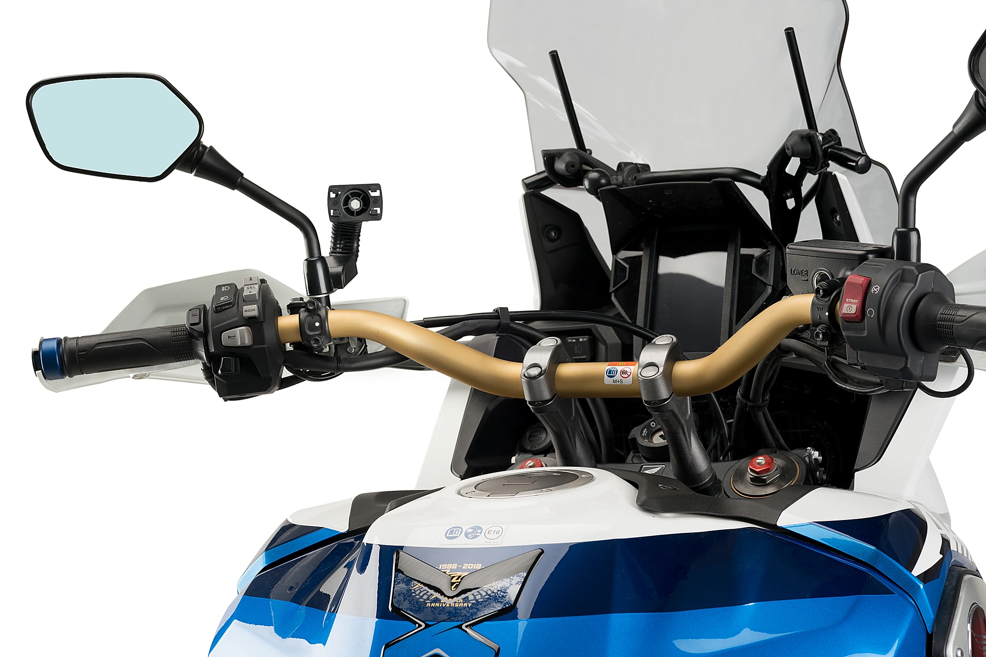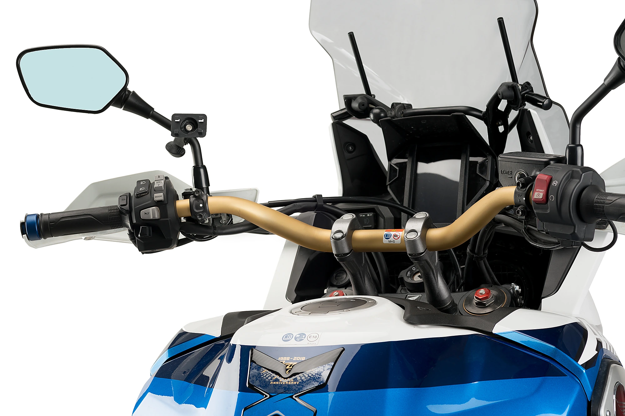 Vous pouvez monter le Support téléphone sur la base du rétroviseur, à la tige du rétroviseur, sur le guidon ou sur le té de fourche de la moto où il será le plus protégé contres les impacts et les trous sur la route.