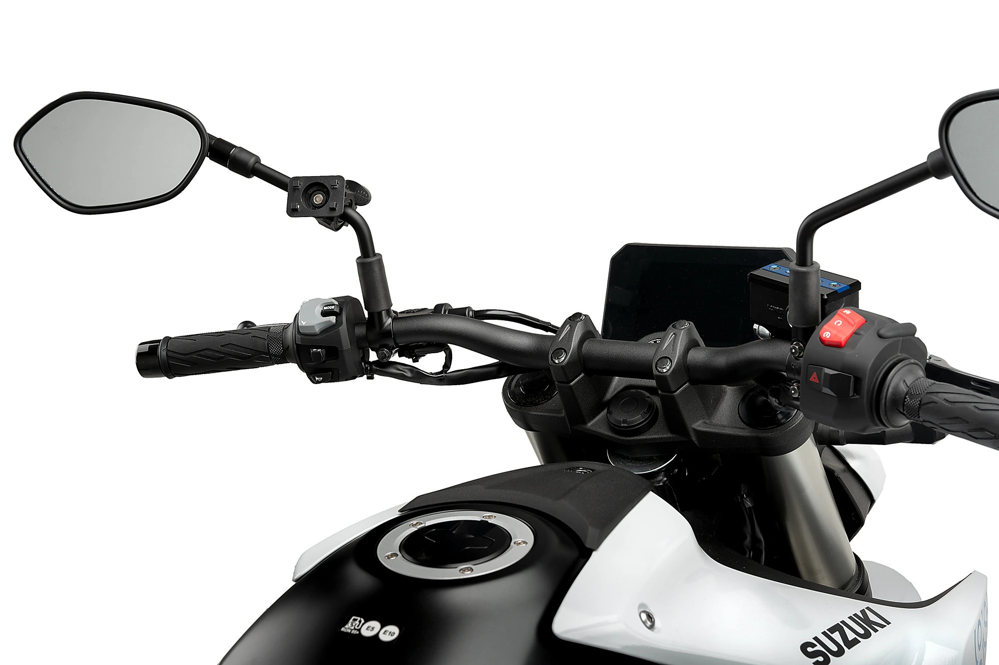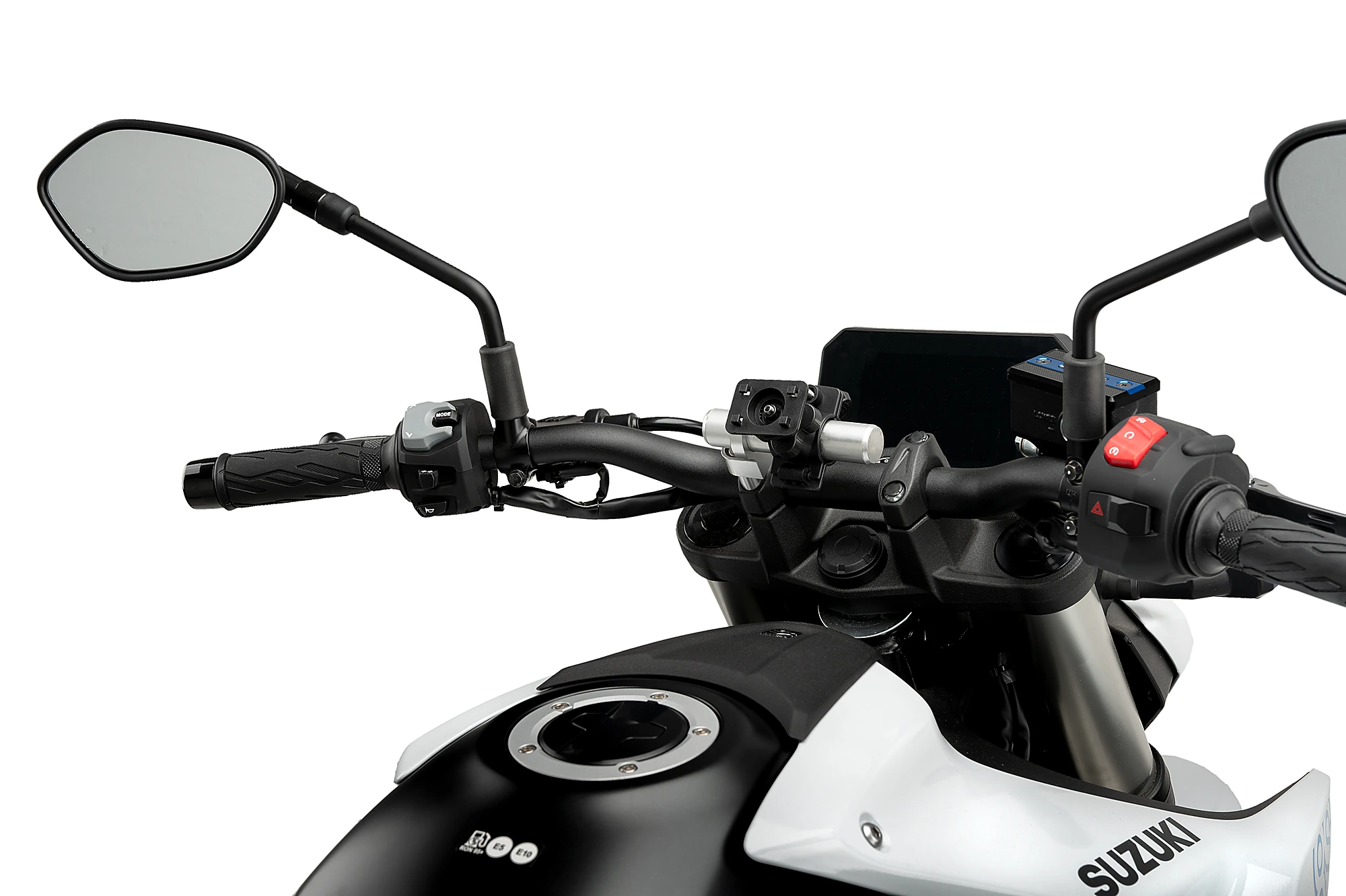 Vous pouvez monter le Support téléphone sur la base du rétroviseur, à la tige du rétroviseur, sur le guidon ou sur le té de fourche de la moto où il será le plus protégé contres les impacts et les trous sur la route.