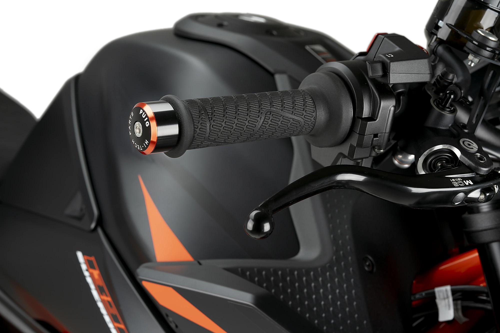 Prodotto da un blocco di alluminio di alta qualità per ottenere un pezzo leggero e resistente. Sono composte da tre parti, un corpo centrale, un anello disponibile in vari colori per ottenere il miglior abbinamento con la moto, e un fondello con la scritta Puig Hi-Tech Parts.