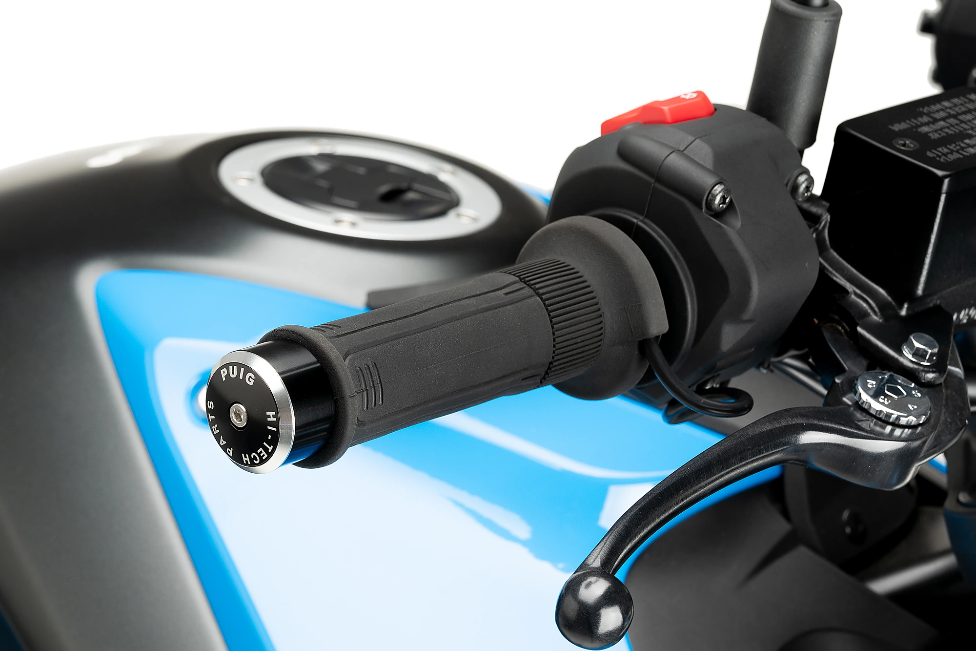 Prodotto da un blocco di alluminio di alta qualità per ottenere un pezzo leggero e resistente. Sono composte da tre parti, un corpo centrale, un anello disponibile in vari colori per ottenere il miglior abbinamento con la moto, e un fondello con la scritta Puig Hi-Tech Parts.