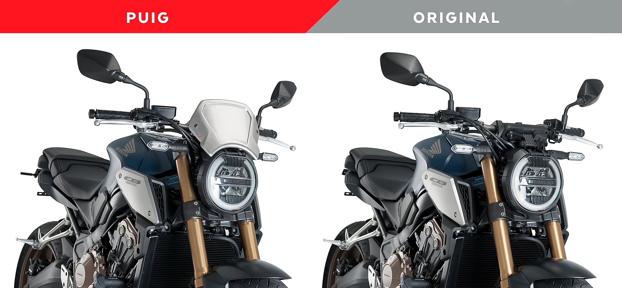 Per quanto riguarda il montaggio, la carenatura frontale in alluminio Puig ha due punti di ancoraggio e un supporto di ferro universale. PUIG ha anche supporti specifici se ne avete bisogno per il vostro modello di moto.