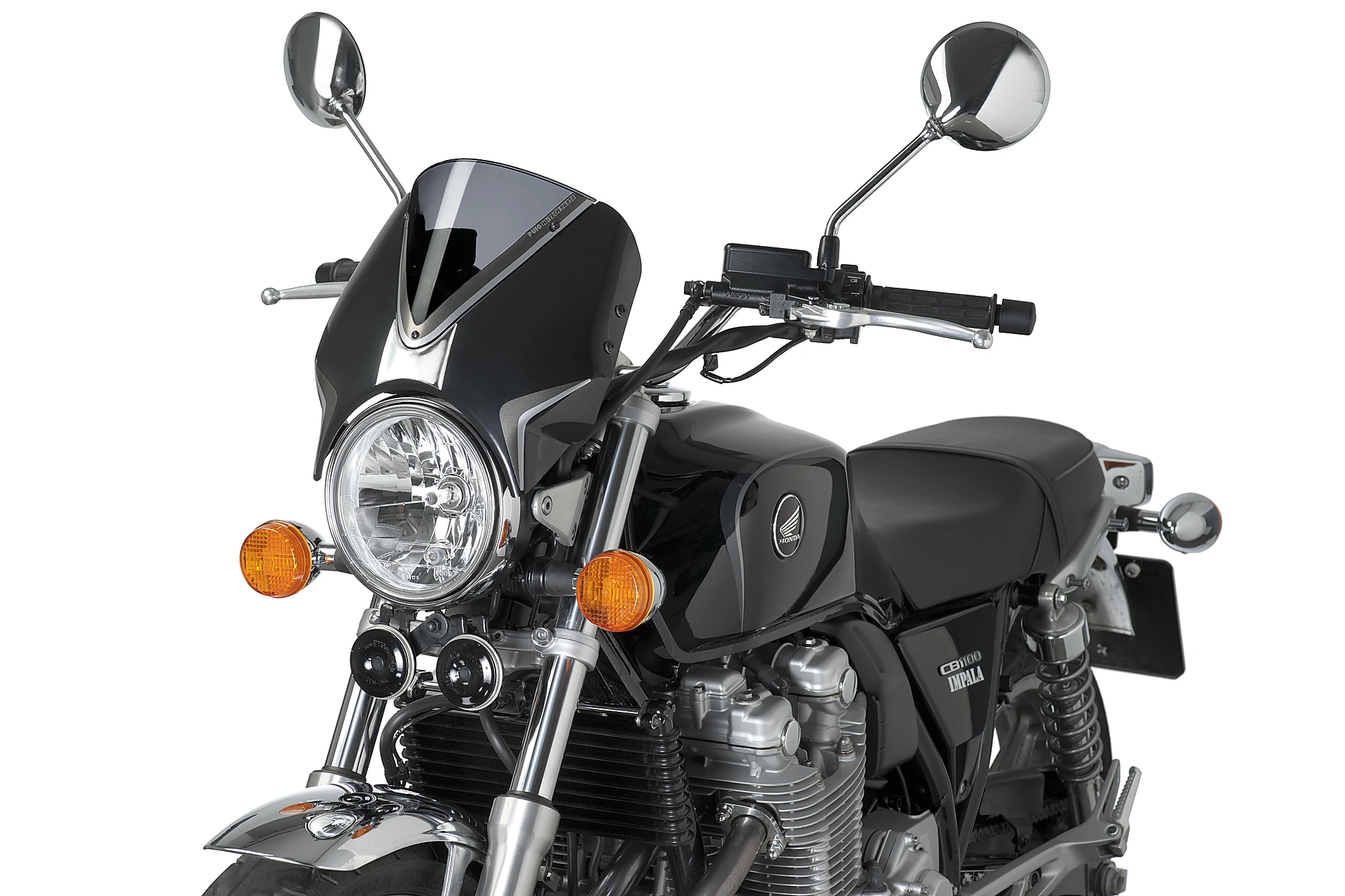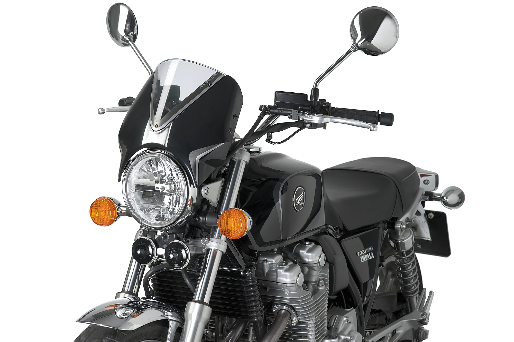 Rinnova il parabrezza della vostra moto con il nuovo parabrezza Retrovision della Puig. Si tratta di un'evoluzione del cupolino universale modello vision di Puig ed è stato progettato e sviluppato per i più diffusi modelli di moto retrò sul mercato, che non solo migliorano il flusso d'aria intorno al pilota, rendendo la guida più confortevole, ma migliorano anche l’immagine d'epoca della moto. Inoltre, sono accompagnati da un kit adesivi, per gentile concessione di Puig, per fornire alla motocicletta il proprio tocco personale.