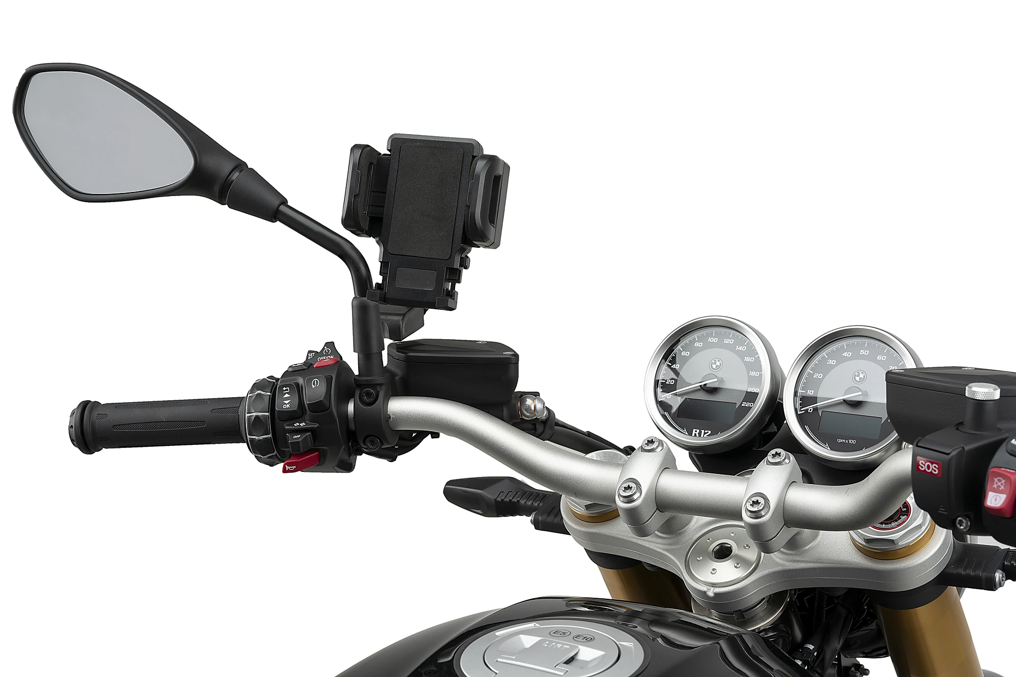 Una volta che il supporto è installato, è necessario acquisire un supporto manubrio per essere in grado di montare il telefono cellulare. È possibile ottenere il supporto Puig per manubrio rif. 3534N.