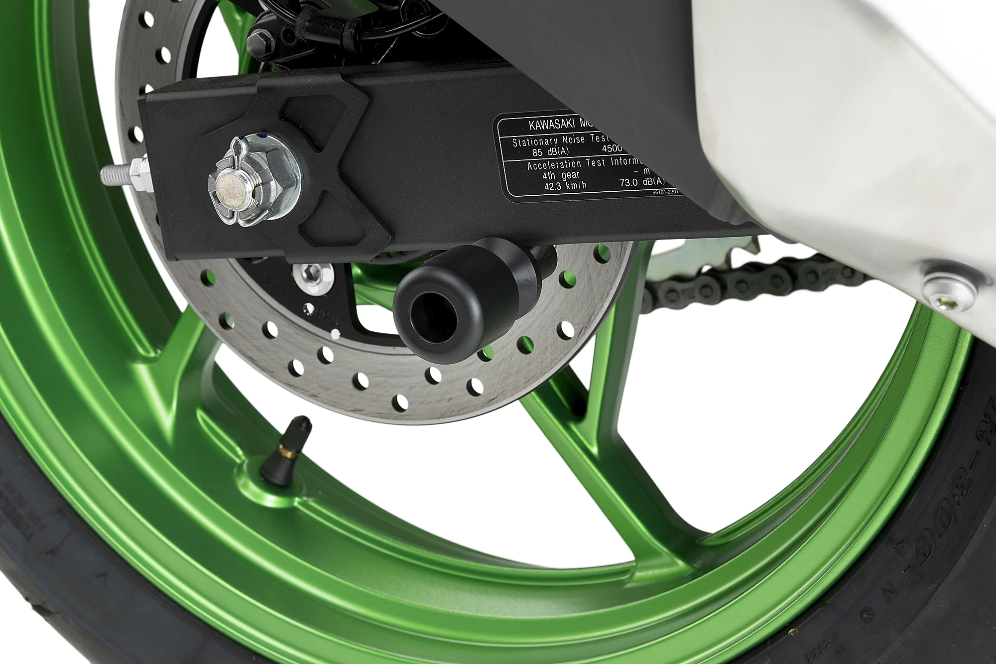La parte, oltre alla sua funzionalità, soddisfa anche lo scopo di proteggere il forcellone grazie all'incorporazione della rondella in nylon.