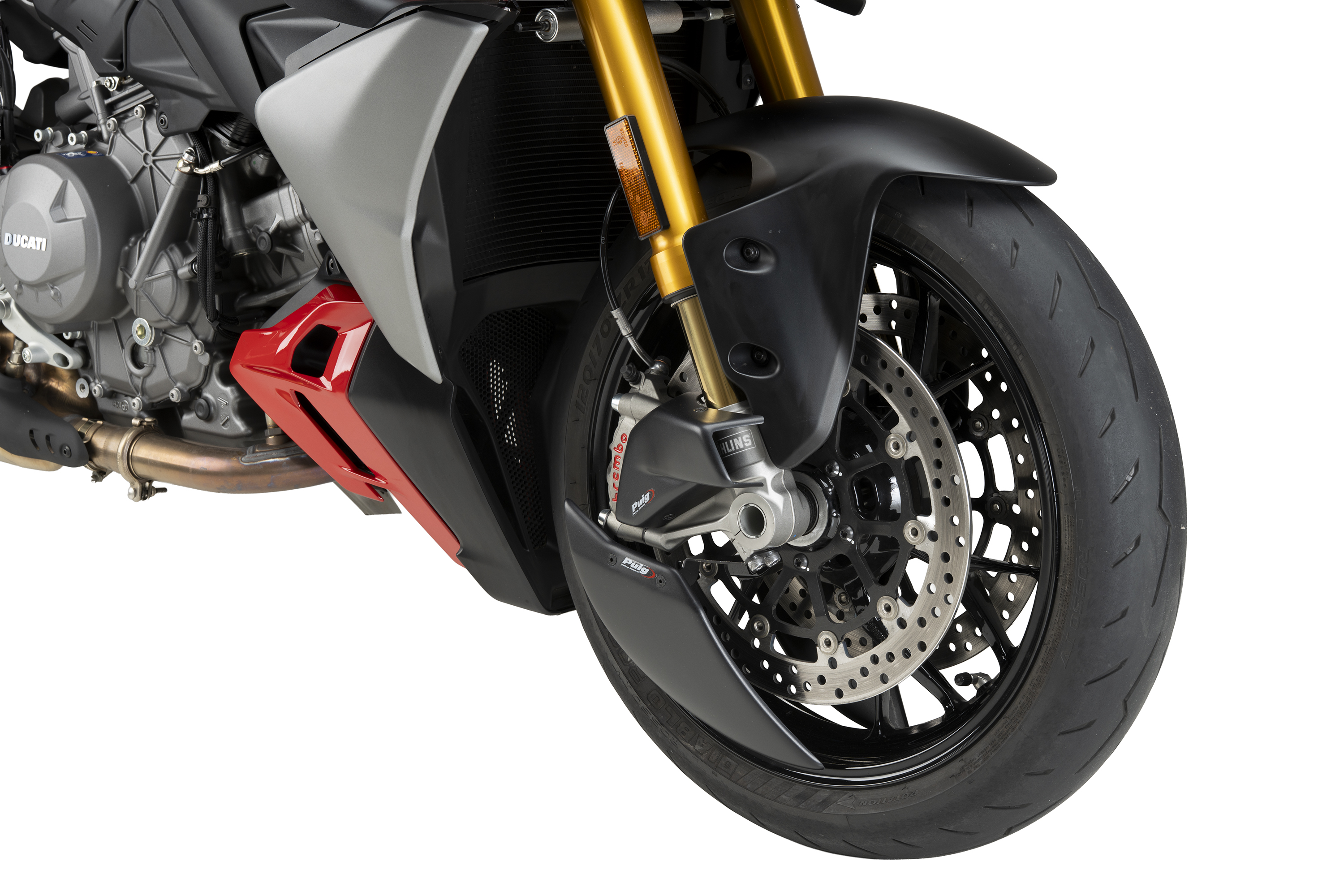 Dal punto di vista aerodinamico, l’Air Duct agisce come un condotto d’aria che la cattura, la compatta e la dirige direttamente verso le pinze, evitando il surriscaldamento e mantenendo condizioni di lavoro ideali. I test effettuati in pista hanno confermato un miglioramento reale con un raffreddamento medio di 10 °C, assicurando prestazioni costanti e una frenata più precisa.