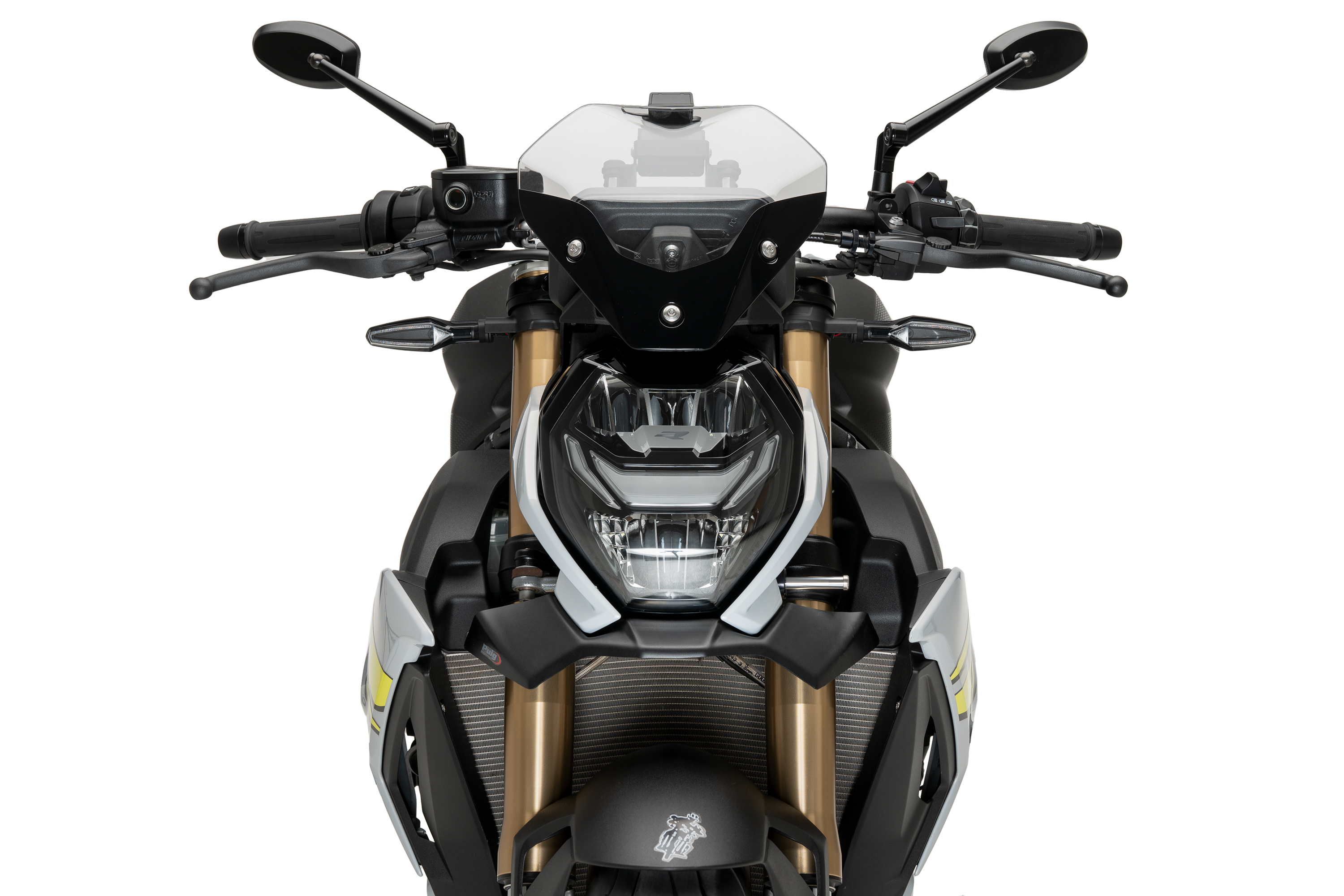 Lo spoiler anteriore naked di Puig aggiunge più volume e forza alla parte anteriore ridotta della S1000R, offrendo un design più estremo ma minimalista, che si abbina alle linee della moto tedesca.