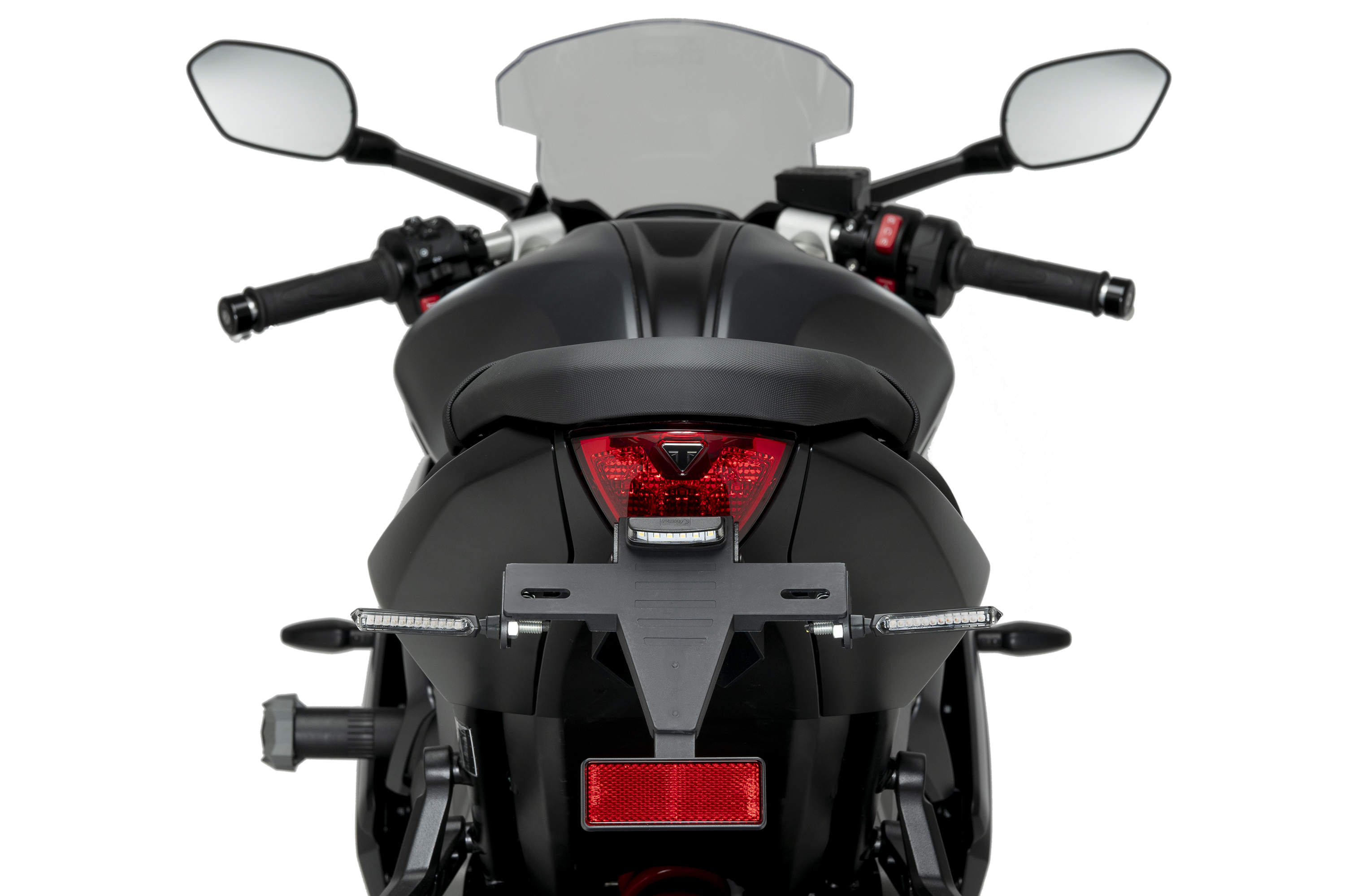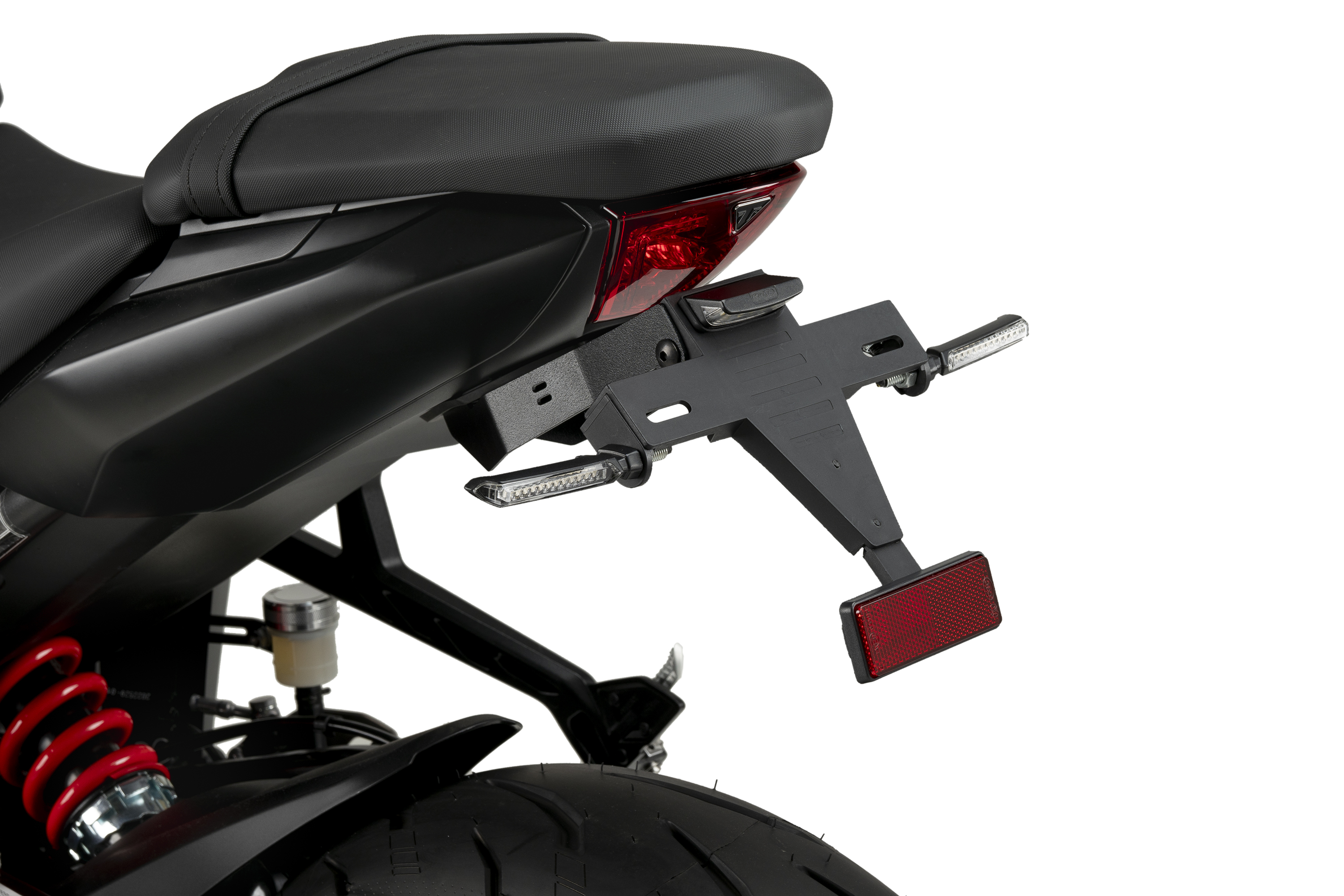 Sostituisci il portatarga originale della tua moto con il supporto portatarga Puig, che, grazie alla sua posizione elevata, dona un aspetto sportivo alla tua motocicletta. Il kit combina parti in acciaio con finitura verniciata in epossidica ed elementi in poliammide, garantendo una significativa riduzione di peso rispetto al supporto originale.
