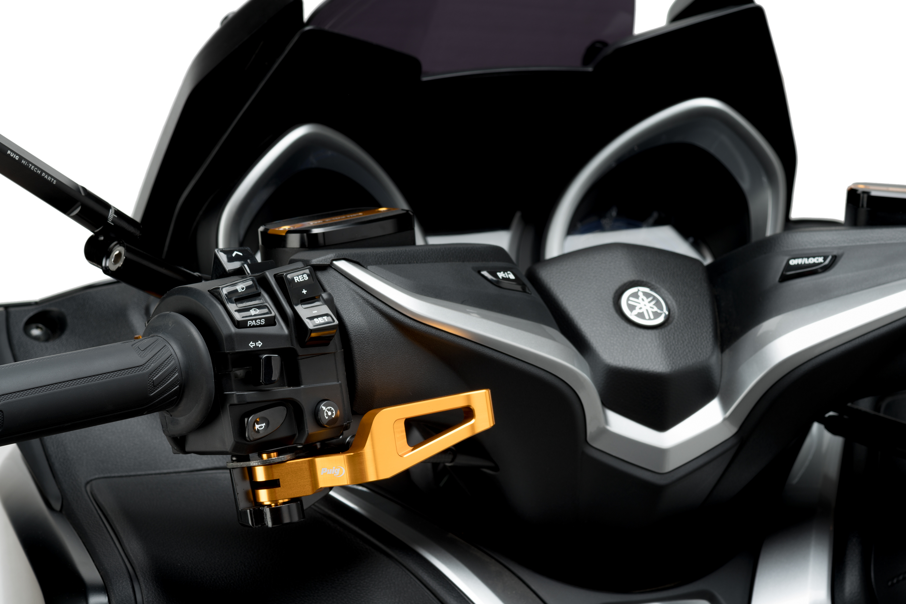 La leva freno di stazionamento della Puig, disponibile per diversi modelli di maxiscooter, sostituisce l'originale e dà allo scooter un tocco di personalizzazione più elegante e sportivo. E’ realizzato in alluminio ed è disponibile in blu, oro, argento e rosso.